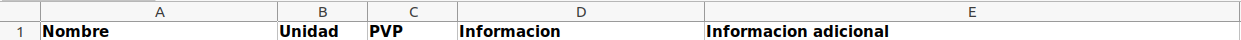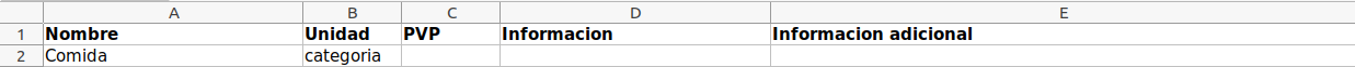 Cuando desee crear una categoría debe escribir el nombre de la categoría debajo de la columna “Nombre” y “Categoría” en la columna “Unidad”.